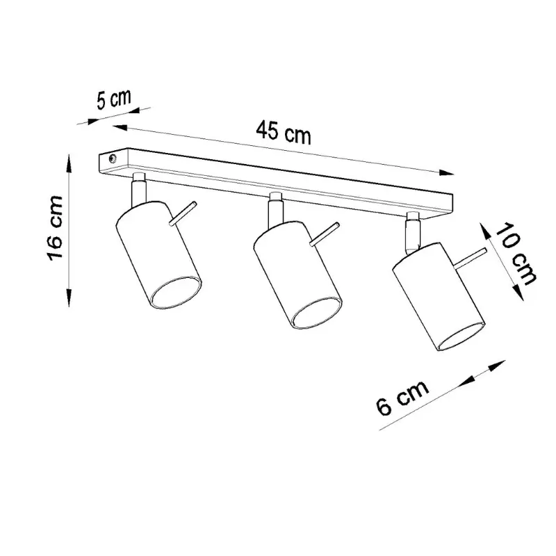 La Lámpara con dos focos en regleta RING 3 tiene las siguientes medidas: