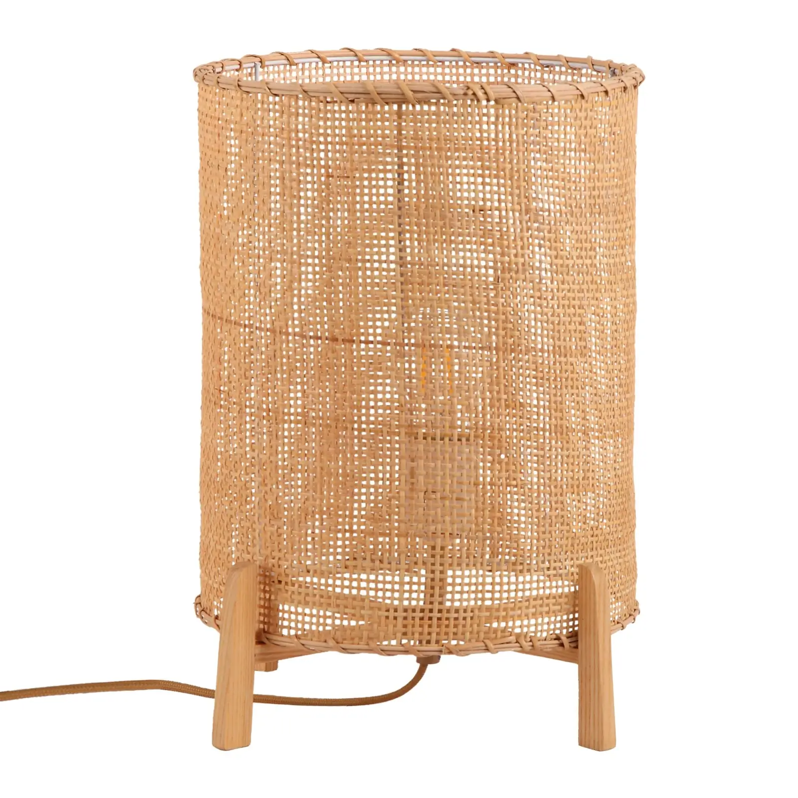 La lámpara de sobremesa Wala no es solo una lámpara, es el complemento decorativo perfecto para crear ambientes cálidos y naturales. Con una pantalla de ratán natural trenzado y una base con patas de madera en tonos claros, esta lámpara aporta un toque artesanal, sencillo y elegante a cualquier estancia.
