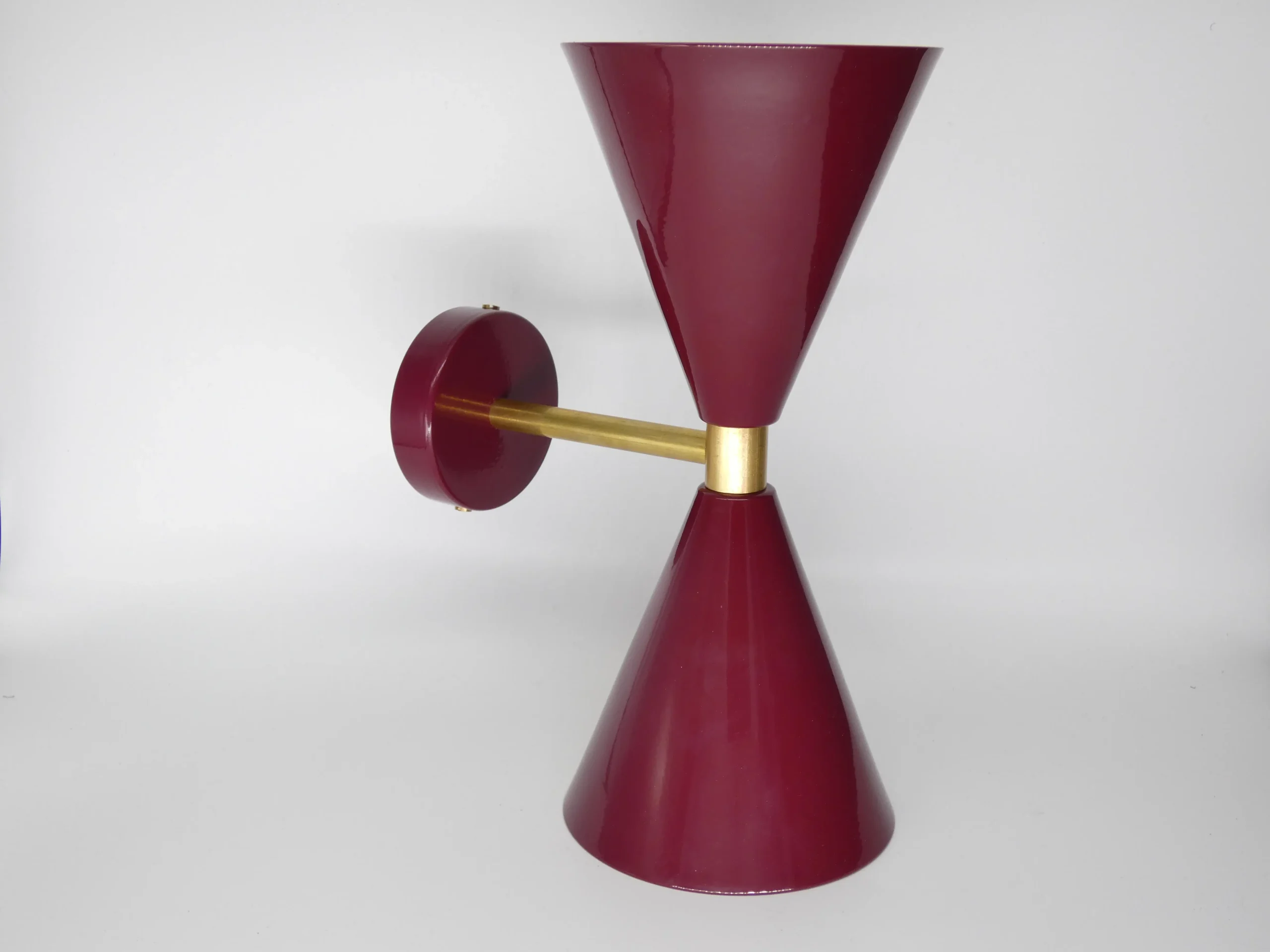 El Aplique Conos 2 Luces en tamaño mediano es una de nuestras creaciones vintage más conocidas y ya puedes seleccionar directamente en la web los colores que prefieras y son muchos. Este aplique es usado principalmente para pasillo pero también para escaleras y como no, como luz junto a la cama.