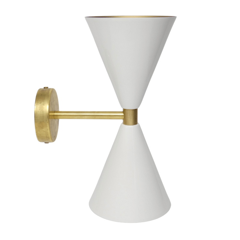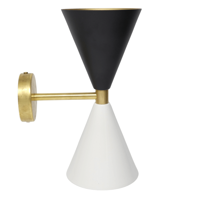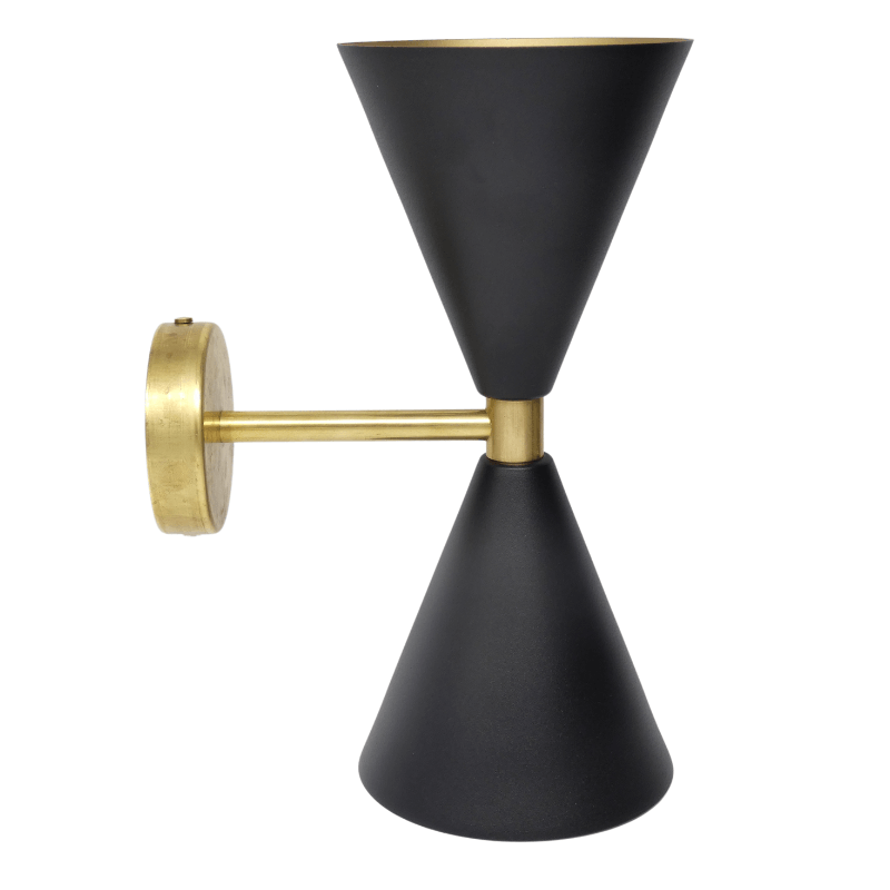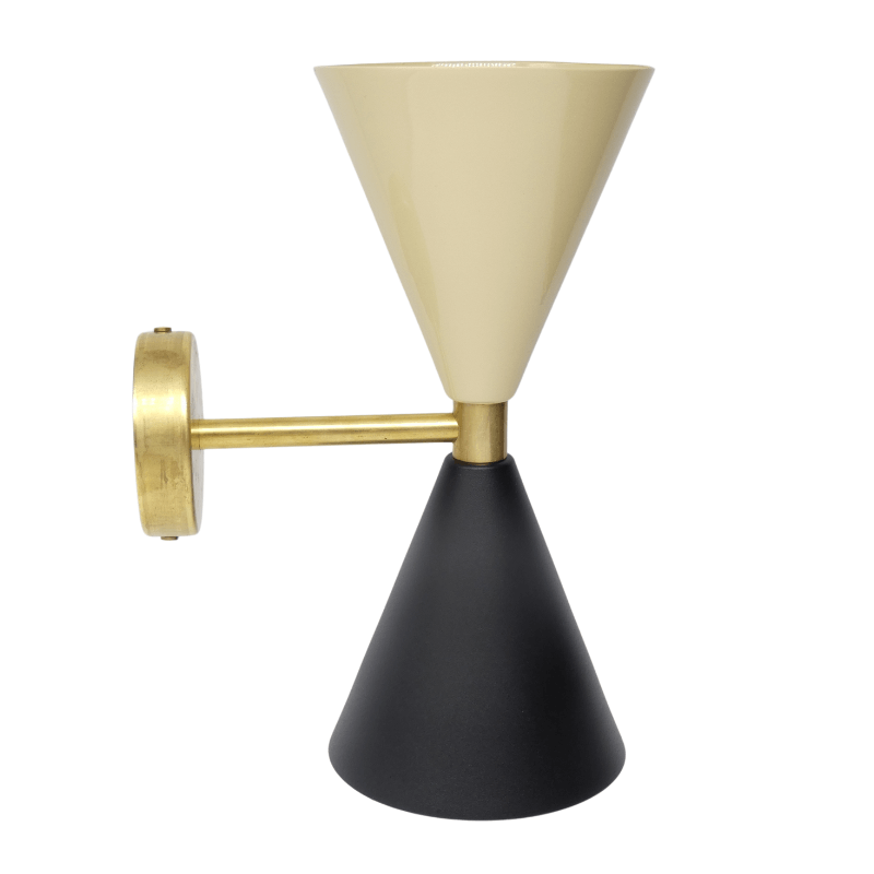 Por defecto en el aplique montamos la base con acabado en latón, si quieres que sea del mismo color de uno de los conos también lo puedes indicar.