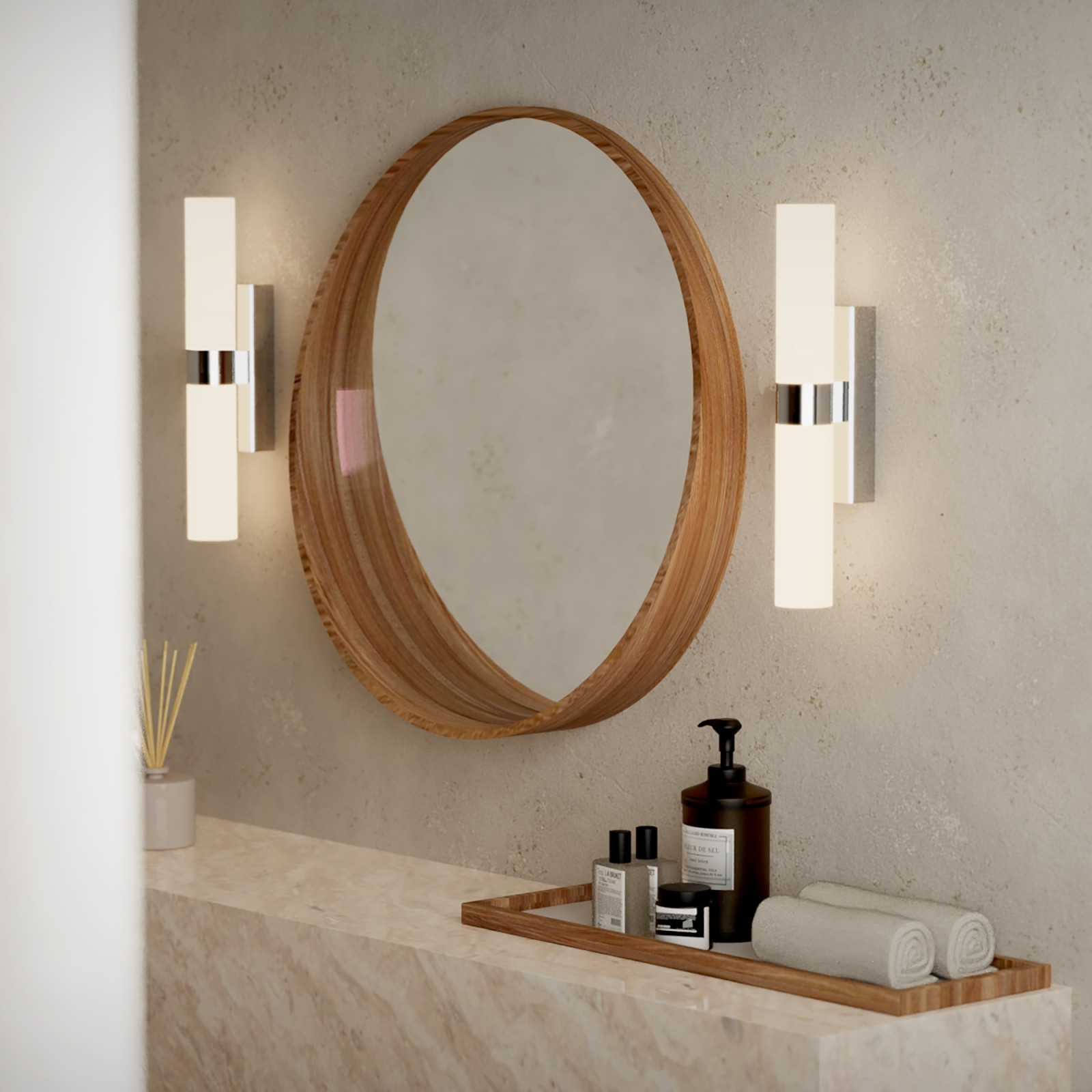 Instalación a tu medida: ¿Lo quieres en horizontal sobre el espejo? Perfecto. ¿Prefieres dos unidades en vertical para un look más simétrico y chic? Queda de cine.