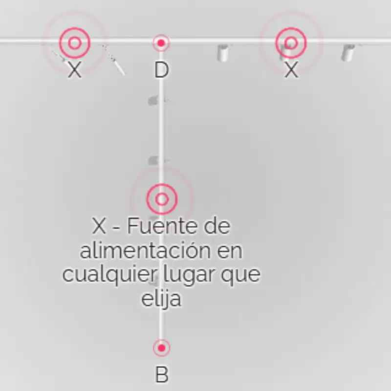 Hemos configurado este kit de carril con focos negros para que sea lo más flexible posible, puedes conectar la fuente de alimentación en cualquier punto de los railes.