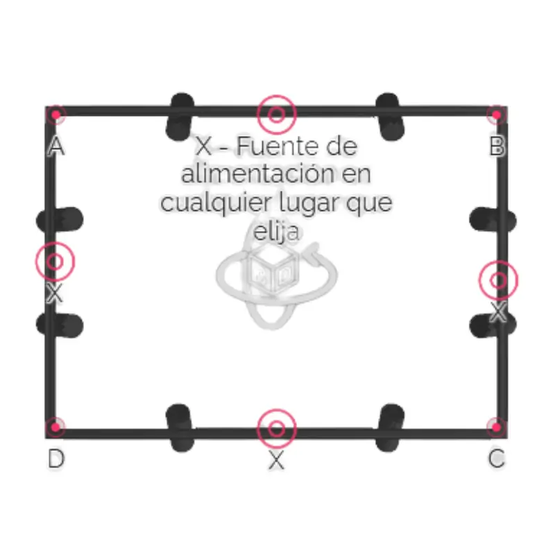 Sistema de iluminación rectangular con 8 focos y 2 lámparas
