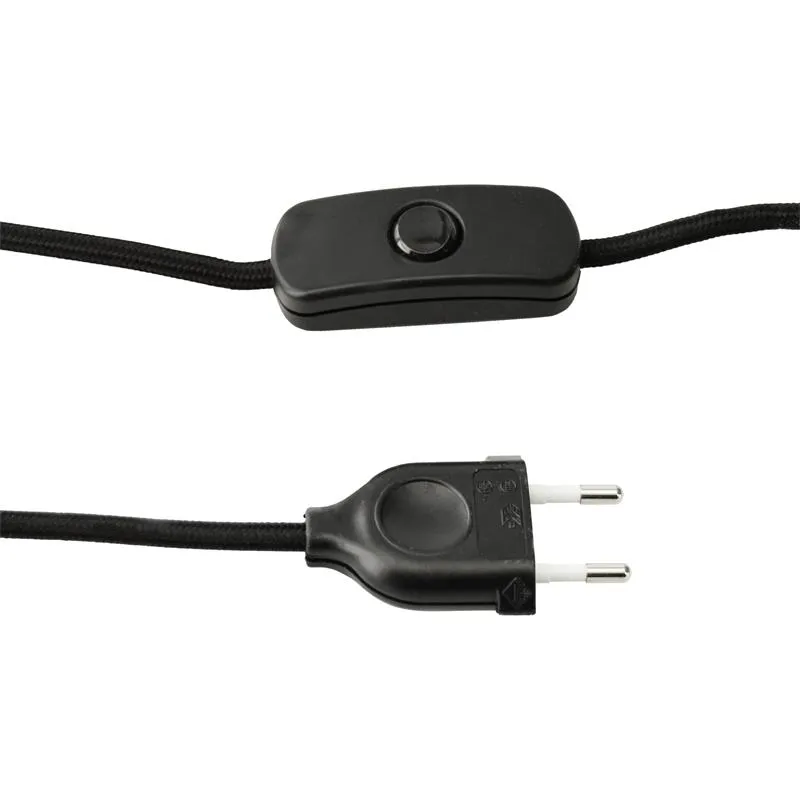La lámpara de cristal lleva cable textil negro y usa una bombilla E14 (no incluida). Tiene unos 15 cm de diámetro y 27 cm de alto, puedes ver las medidas exactas en la imagen adjunta.