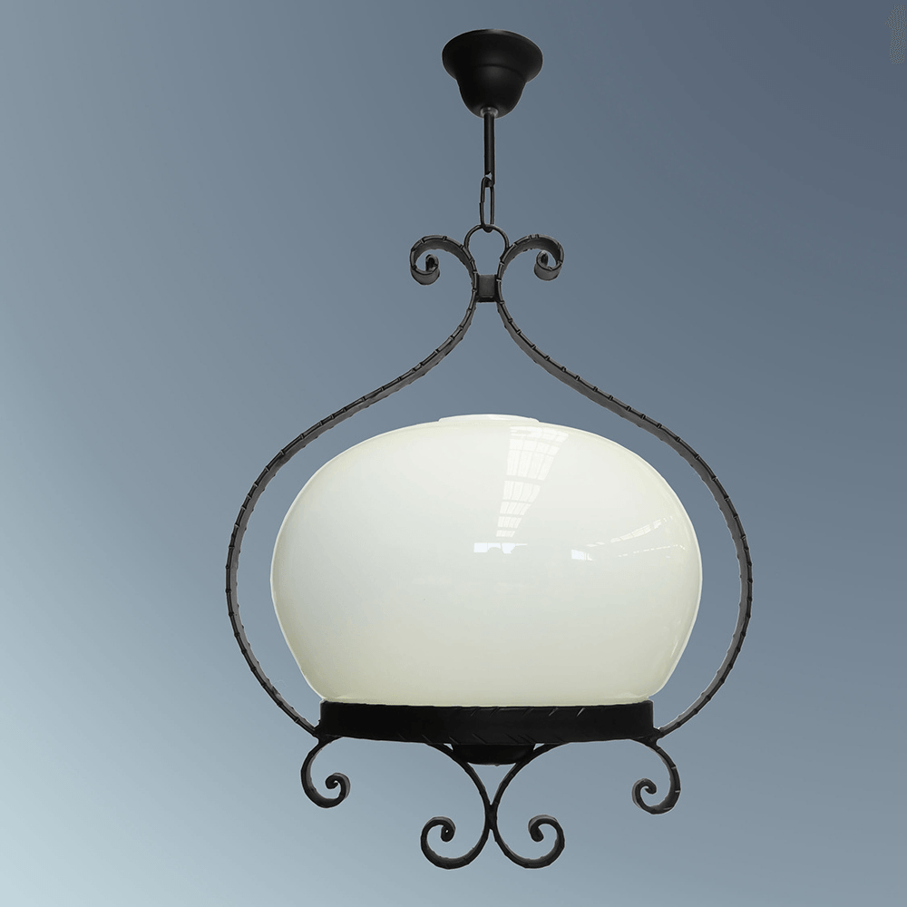 Esta lámpara de forja destaca por su elegante combinación de materiales y su diseño contemporáneo, ideal para darle un toque de sofisticación a cualquier espacio. Con una estructura principal fabricada en hierro forjado, el acabado en negro mate resalta su robustez y estilo industrial, mientras que la tulipa blanca de cerámica suaviza la luz y aporta un contraste armónico con la base metálica.