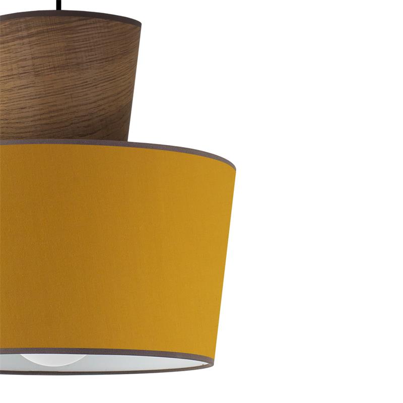 Lámpara colgante con pantalla de tela y madera mostaza Briana