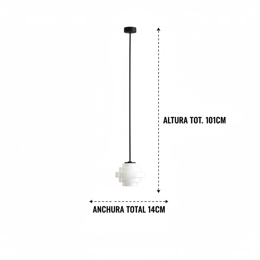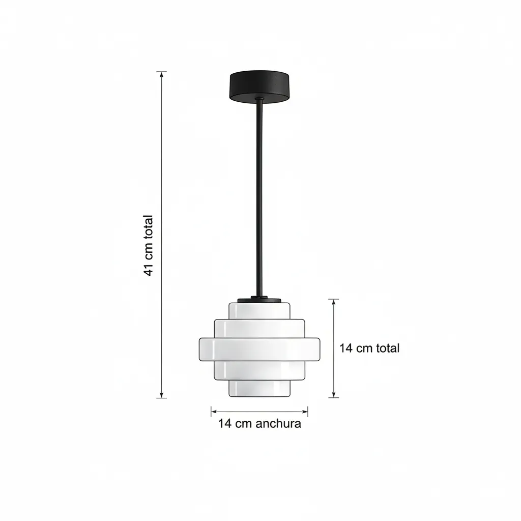 Con sus 14 cm de diámetro y su tulipa de vidrio opal, reparte la luz suave y homogénea, perfecta para cuando quieres ambiente acogedor y cálido.