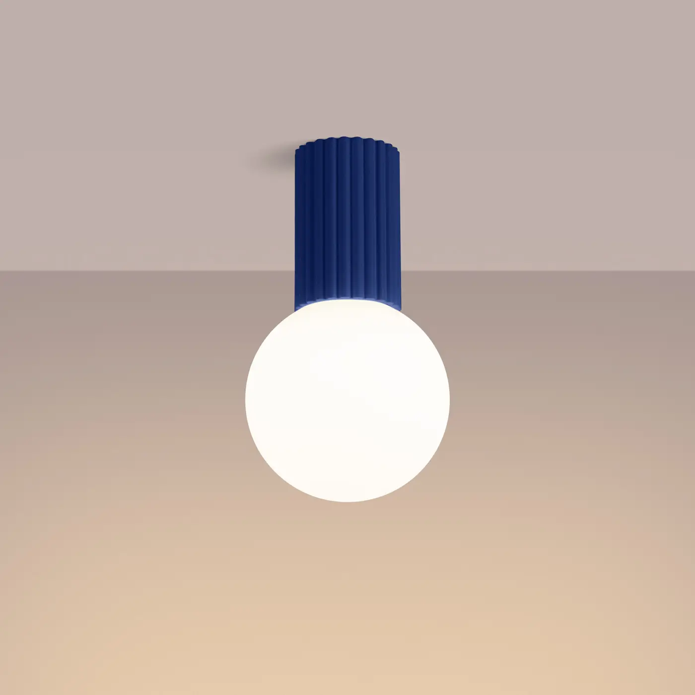 Lámpara de techo bola  BALL azulLámpara de techo bola  BALL azul encendida