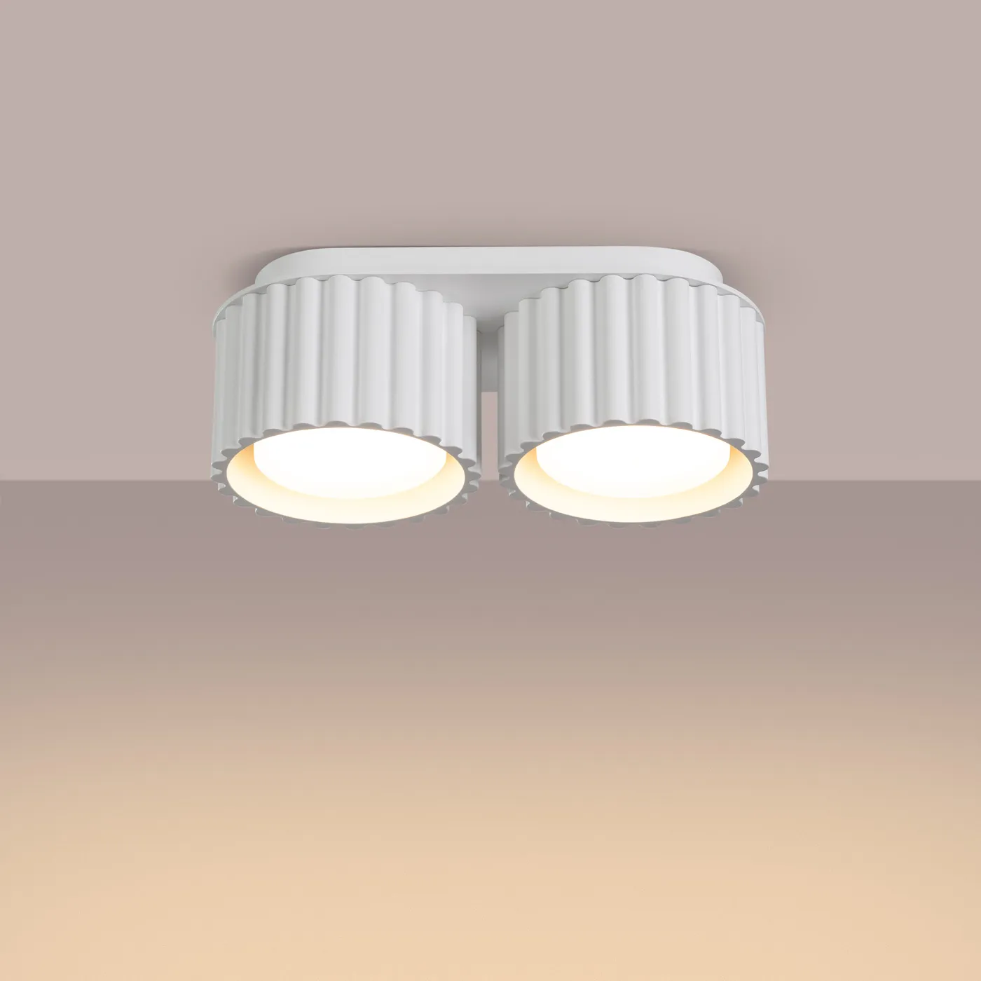 El plafón de techo Aura 2 de color blanco es perfecto si te gusta el ambiente minimalista, industrial o simplemente quieres una iluminación que llame la atención pero sin monopolizar el espacio. Tiene forma redondeada con unas estrías muy características y atractivas.
