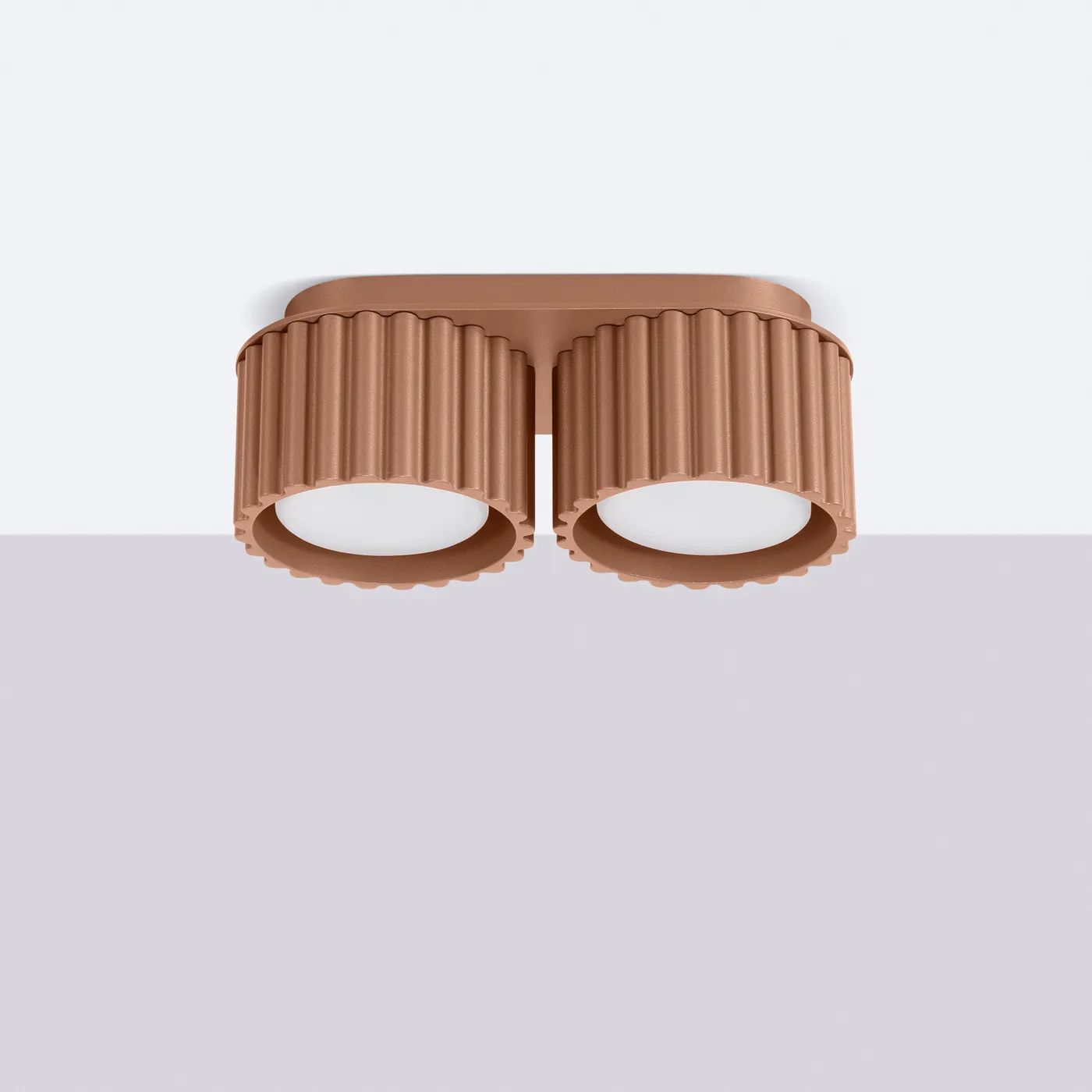 El plafón de techo Aura 2 de color moca es perfecto si te gusta el ambiente minimalista, industrial o simplemente quieres una iluminación que llame la atención pero sin monopolizar el espacio. Tiene forma redondeada con unas estrías muy características y atractivas.