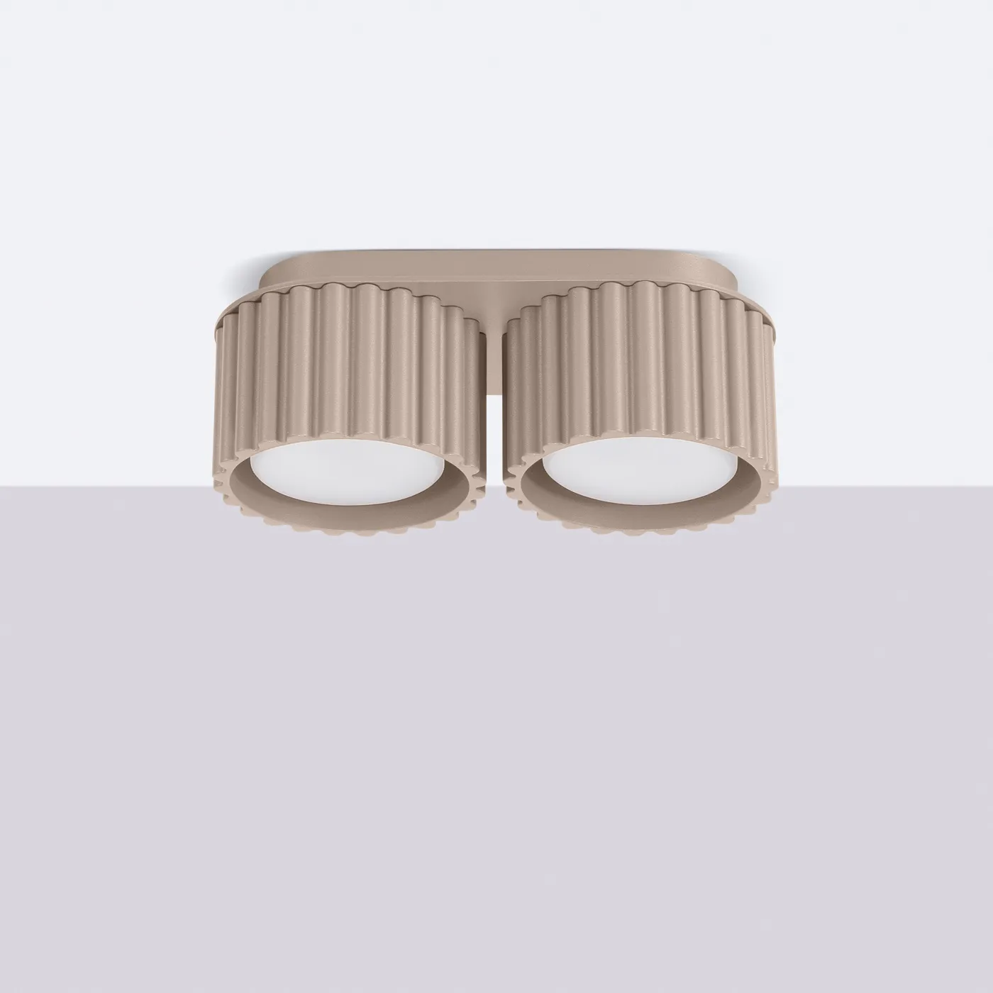 El plafón de techo Aura 2 de color topo es perfecto si te gusta el ambiente minimalista, industrial o simplemente quieres una iluminación que llame la atención pero sin monopolizar el espacio. Tiene forma redondeada con unas estrías muy características y atractivas.