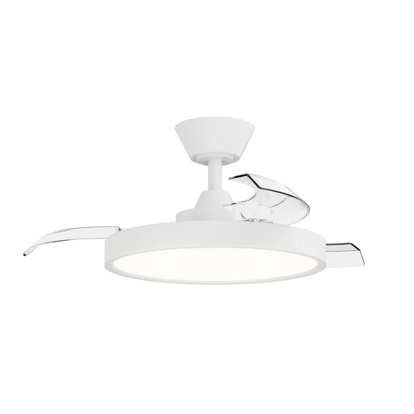 Este ventilador es la elección perfecta para quienes buscan un ventilador con luz LED regulable y diseño contemporáneo, ideal tanto para salones como para dormitorios de estilo moderno o espacios minimalistas. Sus palas transparentes de policarbonato apenas se notan cuando están cerradas, respetando al máximo la armonía visual del entorno.