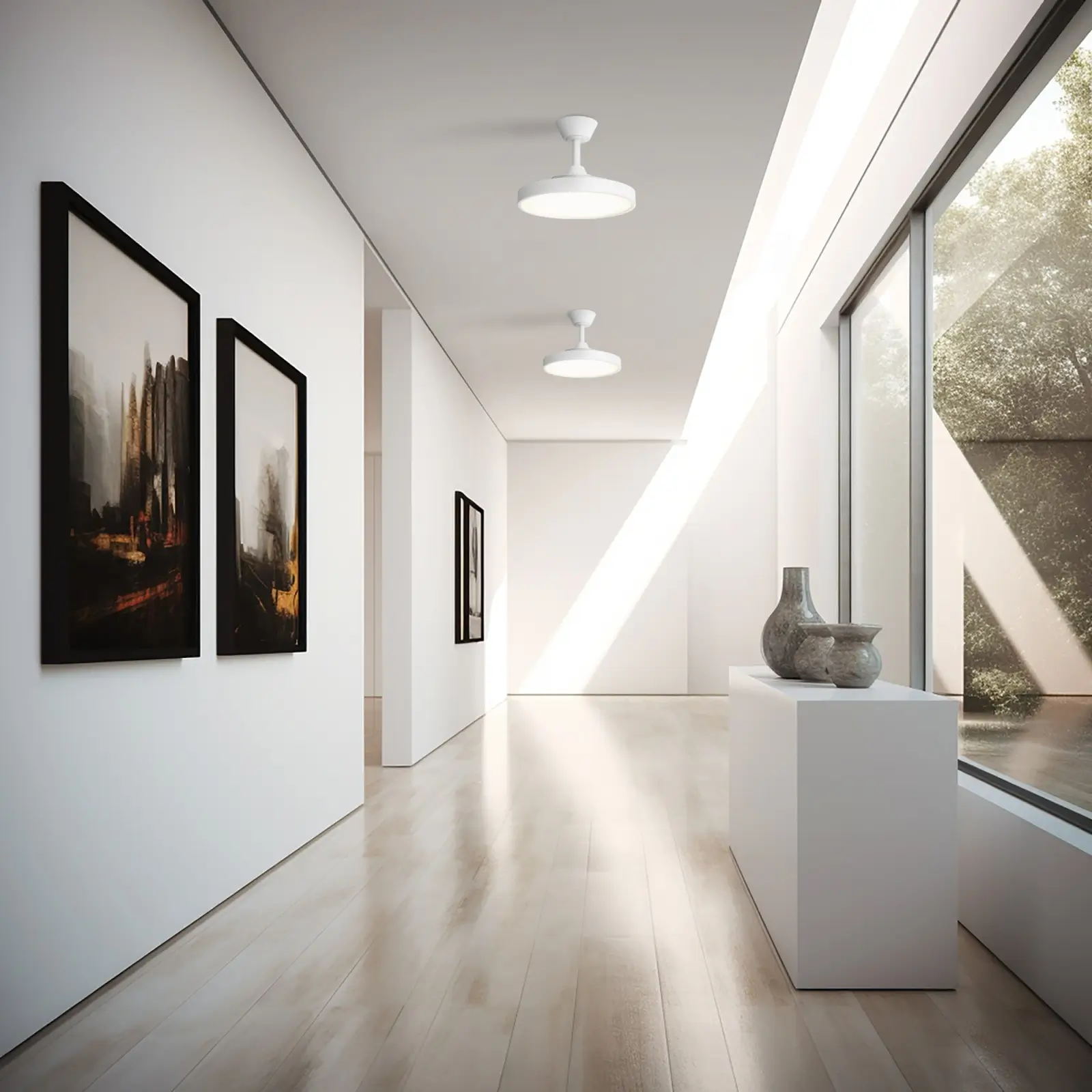 El diseño se encuentra con la tecnología en este ventilador de techo con palas retráctiles que redefine la elegancia moderna. Una propuesta minimalista que fusiona funcionalidad, estética y confort en un solo elemento. Cuando no está en uso, sus palas transparentes se recogen discretamente, transformándolo en una lámpara decorativa de líneas limpias y perfil ultra fino. Al encenderlo, el ventilador despliega su potencial, aportando una brisa silenciosa y eficiente con un toque de sofisticación.